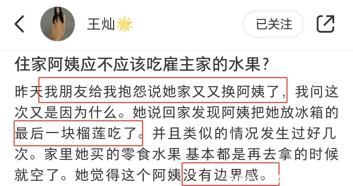 当然,身为员工私自动了主家的东西,确实不对,这位阿姨的确有问题,但网友看来,王灿的问题更大!